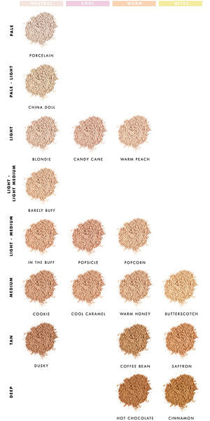 Neutraalin sävyiselle iholle käyvät myös sävyt Barely Buff, Blondie, China Doll, Cookie, Dusky, In The Buff ja Porcelain.