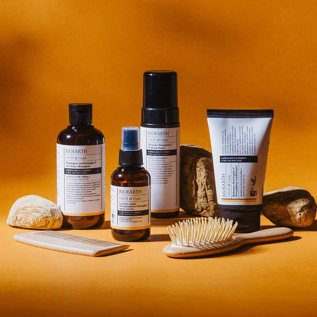 Bioearth HAIR 2.0 Curl-tuotelinja on suunniteltu kiharille hiuksille.