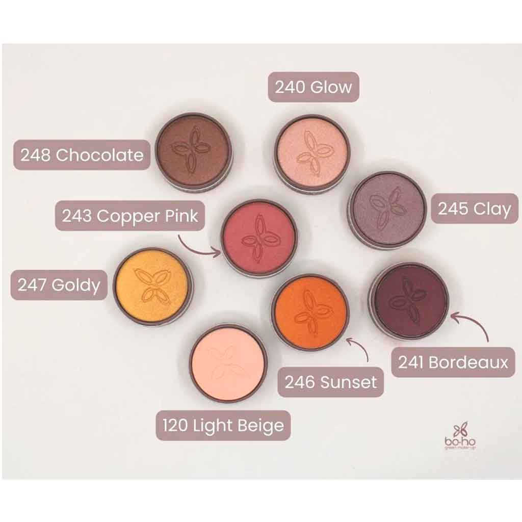 Copper Pink: MICA, CI 77891 (TITANIUM DIOXIDE), CI 77491 (IRON OXIDES), ZEA MAYS (CORN) STARCH*, SIMMONDSIA CHINENSIS (JOJOBA) SEED OIL*, RICINUS COMMUNIS (CASTOR) SEED OIL*, GLYCERIN**, ZINC STEARATE, BENZYL ALCOHOL, LECITHIN, PRUNUS ARMENIACA (APRICOT) KERNEL OIL*, DEHYDROACETIC ACID, TOCOPHEROL, ASCORBYL PALMITATE, CITRIC ACI, TIN OXIDE, AQUA (WATER).