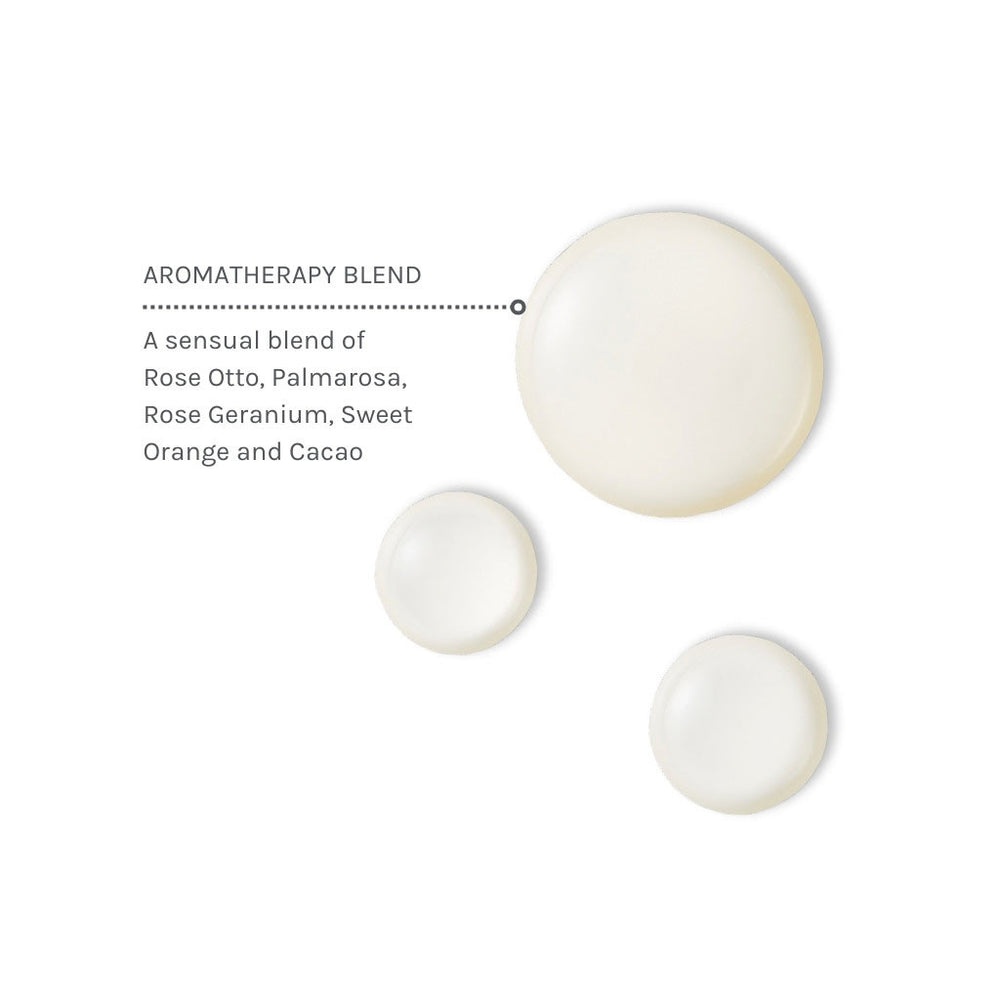Tuoksukokonaisuus yhdistää ruusuöljyn, palmarosan, ruusugeraniumin, makean appelsiinin ja kaakaon. Näitä eteerisiä öljyjä käytetään aromaterapiassa tukemaan rauhoittumista ja emotionaalista tasapainoa.